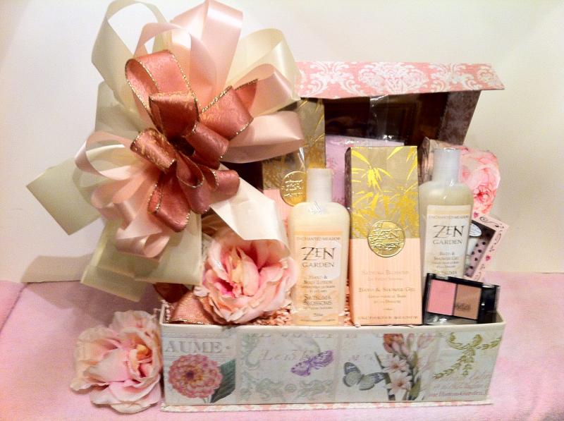 Indulge someone or even yourself with this luxurious spa and pamper gift of Rich Bath Foam, Emollient Body Cream, Note Cards, Journal, Blush, French Manicure Polish, and Rich Chocolates...All Wrapped Up in this beautiful 'keepsake' reusable designer box. Great for Storing your note cards, and Journal, or can be used as a make-up box. Priced at $150