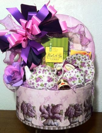 This Fabulous Tea Set includes Teapot, Cup and Saucer, Note cards or Journal, Bath & Spa Gels, Lotions, Teas, Honey, Delicious Cookies, and confections. It's all Wrapped Up inside a beautiful Hatbox, making this an ideal gift for Birthday, Anniversary, Mother's Day, Thanks for the Referral, You're in My Thoughts and Prayers. The Hatbox can be used to store hats, journals, thank you cards and notes. This Tranquil Moments gift will be greatly appreciated. We deliver locally and ship UPS (USA Only) $149.95 Tax and Shipping not Included. Order today at 310-774-6537