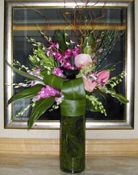 Our Tropical Orchids Stands 3ft tall. It's an ideal display for Foyer or Hotel Lobby - Order one today for your next Special Event, call Linda at 310-774-6537 or email Linda at lindadazzleanddesign.com