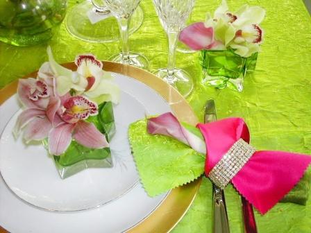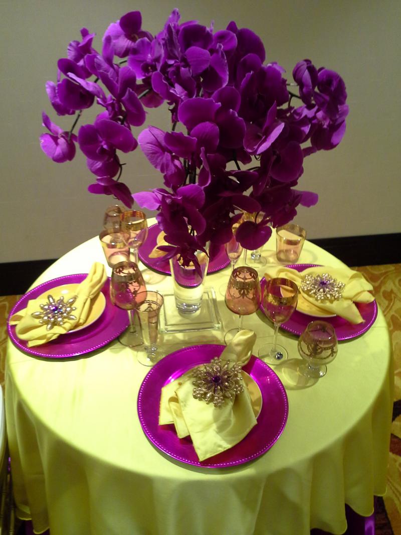 Orchids Topped Off this Table Setting and what an Impression and Statement these colors of Magenta and Yellow make to our guest!