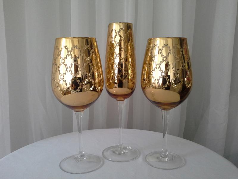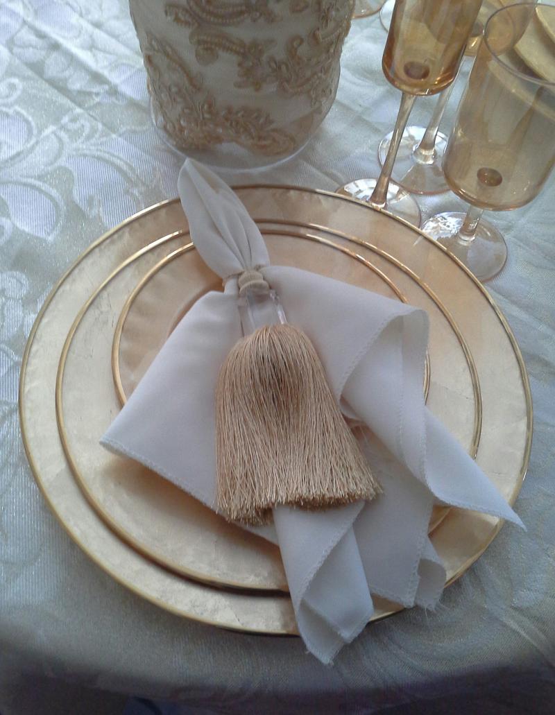 Gold Glass Dinnerware topped with Lucite Glass and Tassle Napkin Ring