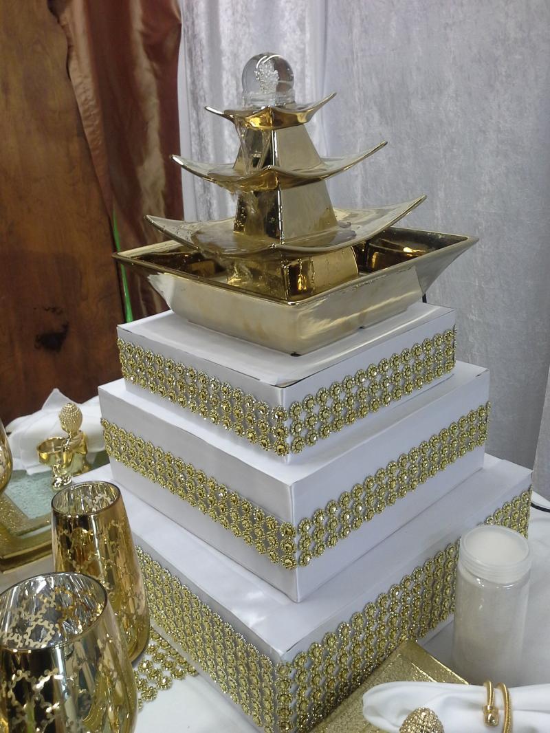 My Waterfall Centerpiece was a Hit at last year's Table Setting Class - Yes! A Real Waterfall with water trinkling down - See Gold Place Setting to the left with a miniture Buddah sitting in center-You've got to come to the June 25 class - it will be informative, creative, and so much fun!