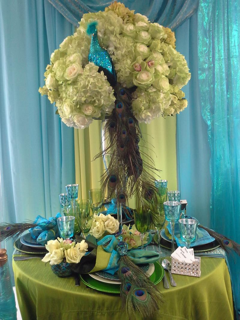 Spectacular Peacock Table Setting... A Dazzle & Design Original by Linda Patterson