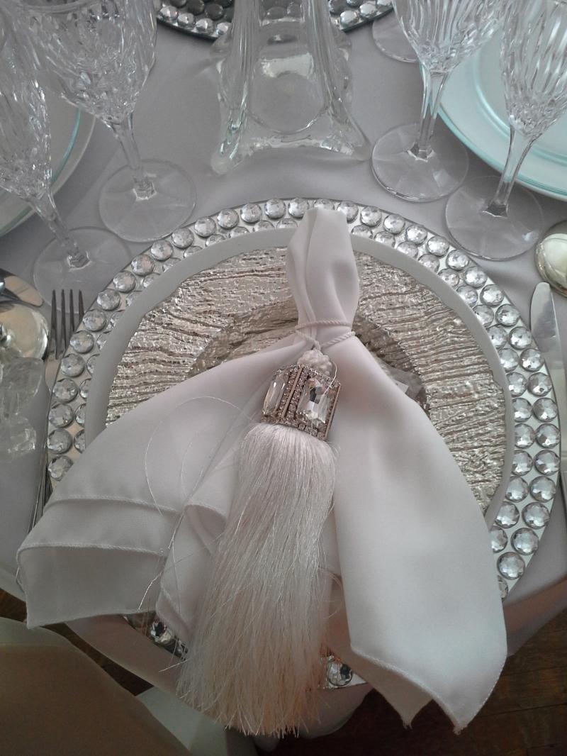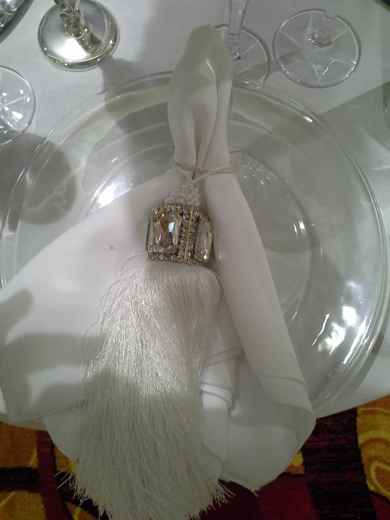 A Diamond Tassle Embellished this Napkin and Place Setting for this Opulent Table