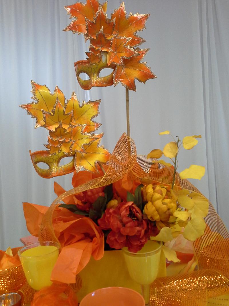 TRY SOMETHING DIFFERENT THIS THANKSGIVING LIKE THESE FUN MASK CENTERPIECES - FROM OUR NOV. 7 TABLE SETTING CLASS
