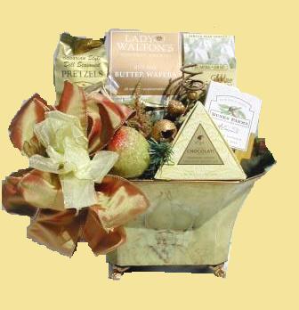 The ideal Thank You gift to those who referred your business to their clients, friends, and colleagues. The Lady Walton has style and when the delicious gourmet treats are gone, she's also graceful, her metal 'keepsake' container will double as a planter for their office desk, making yours 2 gifts in 1. Shown above $ 54.95